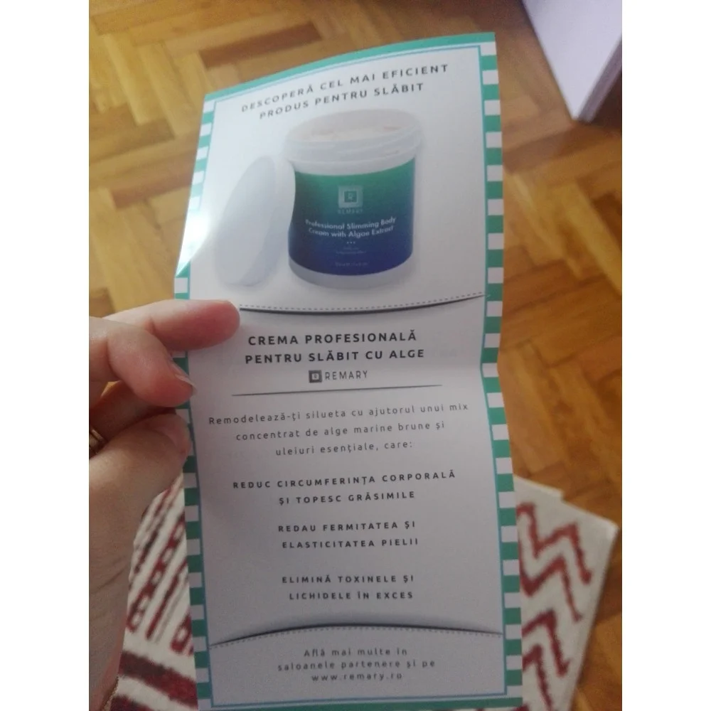 Aceasta crema pentru slabit cu alge, combinata cu o dieta sanatoasa si miscare cel putin 30 minute pe zi, face minuni. Pe langa faptul ca am pierdut centimetri doriti din zona abdomenului, pielea mea a devenit mai elastica si mai hidratata. Crema contine amestecuri placut mirositoare, se potriveste pentru toate tipurile de piele, are un ambalaj frumos.