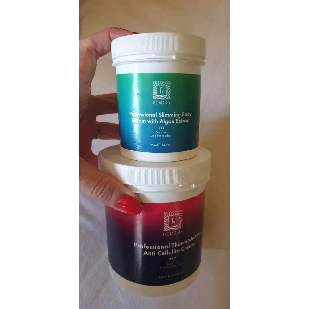 Am achizitionat ultima data pachetul promo Kit profesional mare anti celulita, slabire si anti vergeturi - Sets - Remary - 2 produse cu 50% discount, recomand (inainte de aceasta achizitie am cumparat la pret intreg crema mare anticelulitica la 500 ml si cea de slabire la 250 ml la pret intreg) le-am folosit cu succes. Sunt foarte bune folosite pe termen lung, insa va recomand sa urmariti pachetele promo.