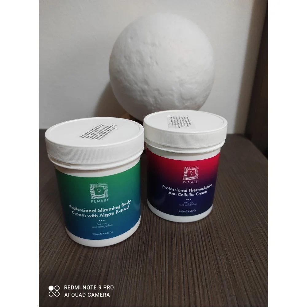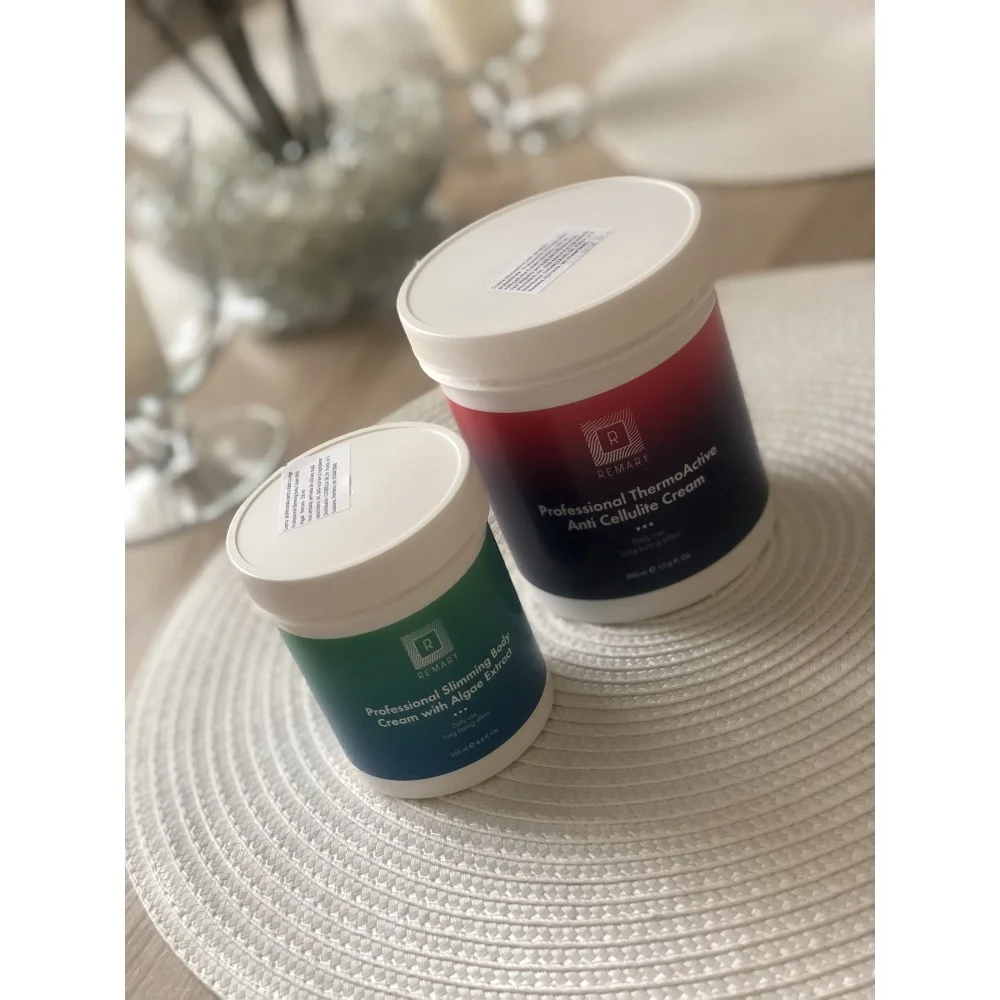 Recomand crema termoactivă și pe cea profesională pentru slăbit cu alge. Ambele sunt calitative, au un miros plăcut, iar pielea devine catifelată. De o săptămână folosesc aceste creme zi de zi (o dată pe zi). Mai întâi mă dau cu crema termoactivă, masez până intră în piele, apoi folosesc crema cu alge și mă împachetez cu folie alimentară timp de 30 de minute. Pielea capătă rapid un aspect plăcut și catifelat. Sunt foarte mulțumită, comparativ cu alte creme pe care le-am folosit.