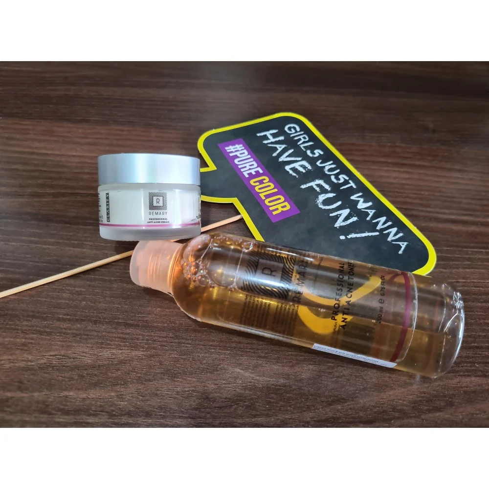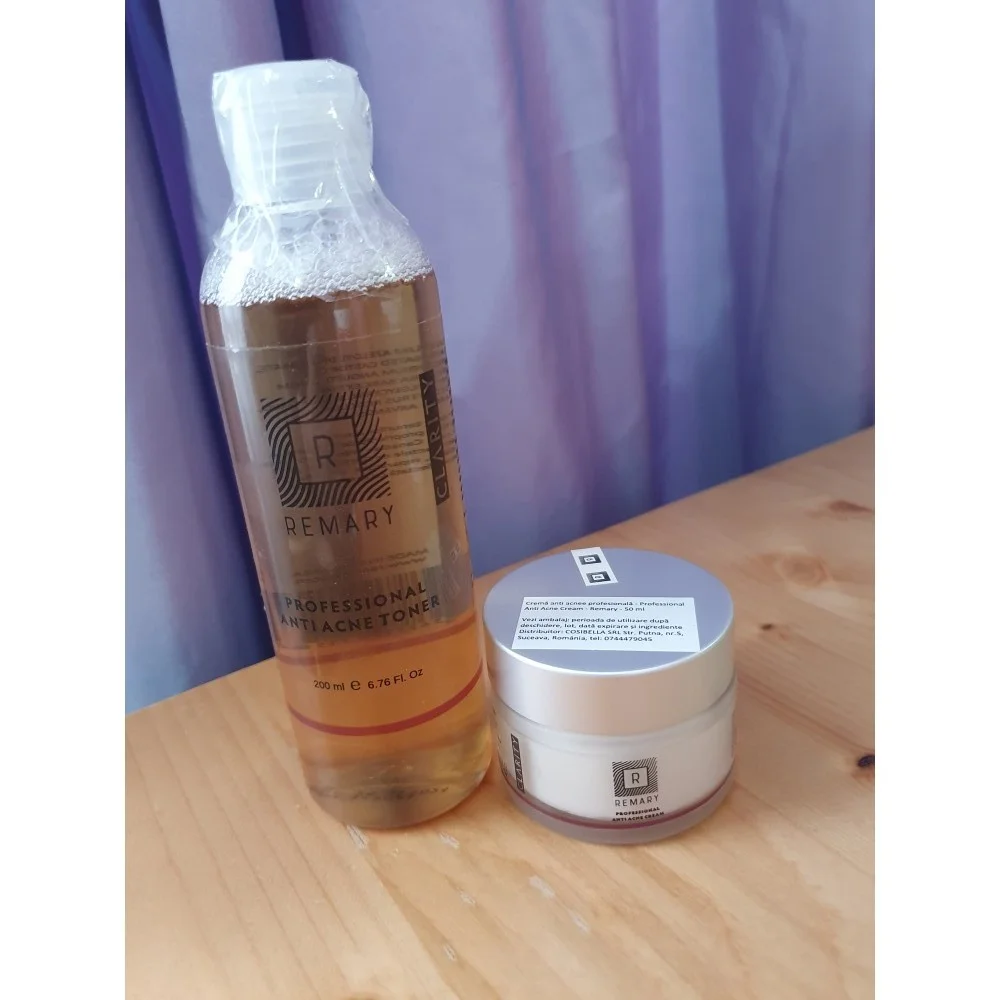 De la masca de protectie am dezvoltat o mica si neplacuta maskne. Tenul meu a fost mereu curat, fara cosuri, fara imperfectiuni. Asa ca am decis sa folosesc produse profesionale pentru a reveni la normal. Mai folosisem cremele anticelulitice Remary care chiar au dat rezultate asa ca am decis sa testez si setul de Loțiune tonică anti acnee profesională si crema tratament. Am folosit lotiunea tonica dimineata, am pus-o pe o discheta demachianta si am aplicat-o pe toata fata. Pe ea scrie sa aplic doar pe zonele afectate, dar mi-a placut senzatia de racorire, mentolata, pe care mi-a oferit-o. Imi place ca imi lasa pielea moale, placuta la atingere. A redus vizibil inflamatia si a "uscat" cosurile. Dupa o saptamana au aparut primele rezultate. Sau mai bine zis, au disparut :)