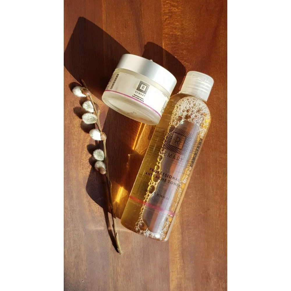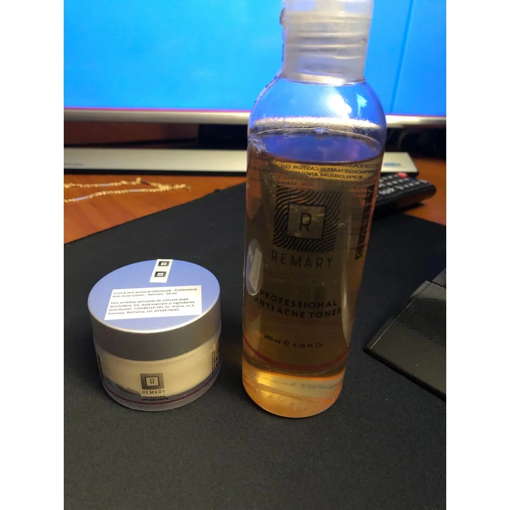 1 x Loțiune tonică anti acnee profesională - Professional Anti Acne Toner - Clarity - Remary - 200 ml 1 x Cremă tratament împotriva acneei și coșurilor - Professional Anti Acne Cream - Clarity - Remary - 50 ml