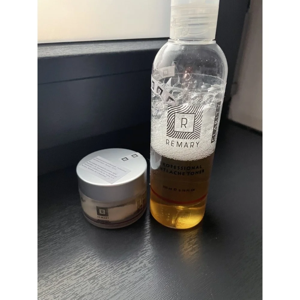 Am incercat setul anti acnee profesional de la Remary la recomandarea unui prieten. De cand cu obligativitatea purtarii mastii ma intorsesem la frustrarile adolescentei, cu o acnee urata dezvoltata pe barbie si chiar nu stiam ce a mai fac sa treaca. Tonerul a facut ca pielea sa redevina luminoasa si a uscat cosurile din prima saptamana, in timp ce crema hidrateaza si continua tratamentul pentru ca pielea sa se uniformizeze in cel mai scrurt timp. Cred ca sunt unele dintre cele mai bune produse anti acnee din cate am incercat vreodata. In mai putin de doua saptamani am reusit sa am pielea curata din nou. Recomand cu drag.